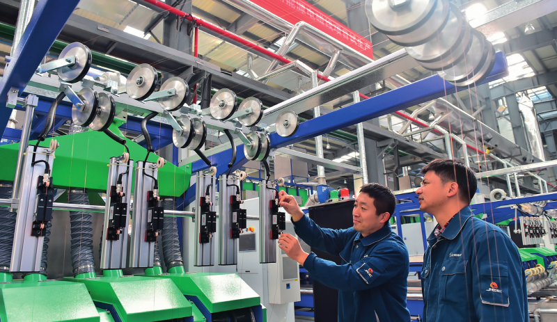 在江西江銅華東電工新材料科技有限公司生產車間,技術工人在生產線上巡檢設備(資料照片)。張善臣攝/本刊