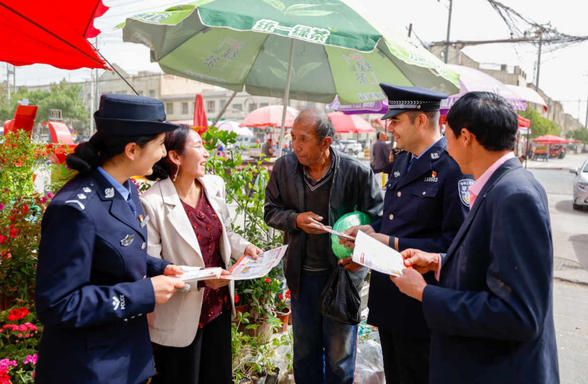 4月12日,新疆維吾爾自治區(qū)葉城縣依提木孔鎮(zhèn)派出所民輔警借助每周的趕集日,在集市設(shè)起“法治小攤”、擺放宣傳展板、備好宣傳手冊(cè),以接地氣的方式將法律知識(shí)送到群眾身邊。