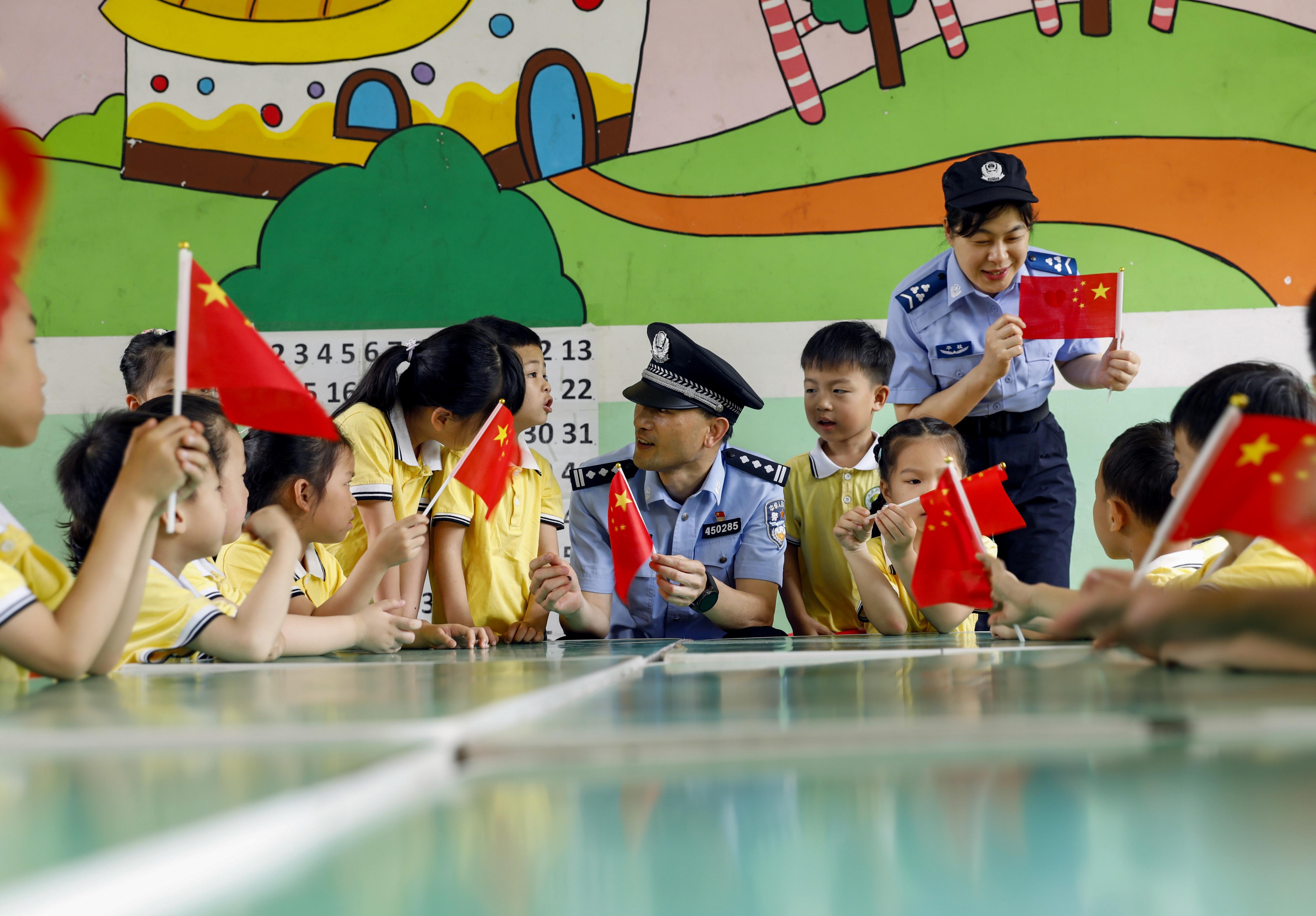 4月13日,廣西壯族自治區(qū)賀州市公安局平桂分局民輔警走進(jìn)轄區(qū)幼兒園開展國(guó)家安全宣傳教育活動(dòng),通過游戲互動(dòng)等趣味形式,將愛國(guó)與安全的種子播撒進(jìn)孩子們的心田。