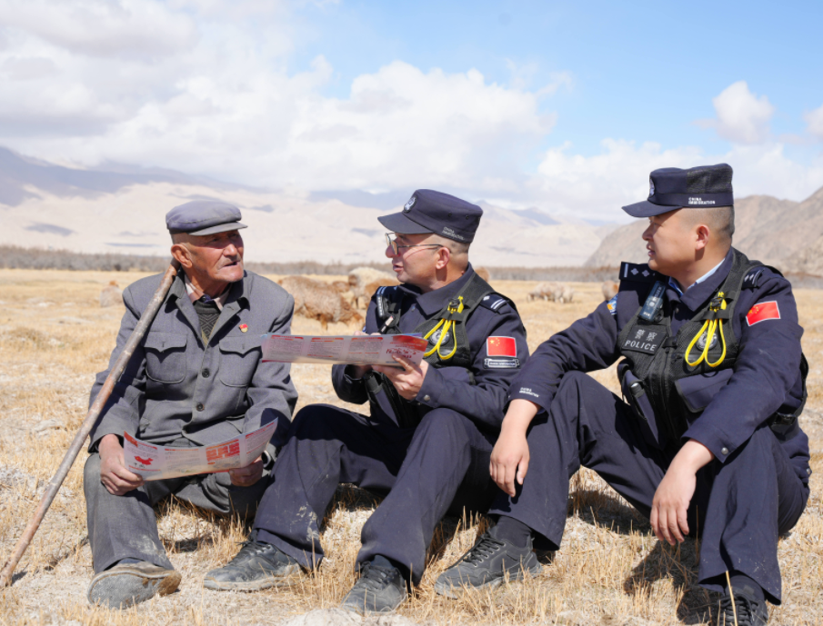 4月13日,在第十一個全民國家安全教育日來臨之際,新疆喀什邊境管理支隊塔什庫爾干邊境派出所組織民警深入牧區(qū)、工地、田間地頭等場所,通過面對面、零距離的普法方式,將國家安全知識送到群眾身邊。民警結(jié)合邊境地區(qū)實際,用通俗易懂的語言向群眾講解了《中華人民共和國國家安全法》《中華人民共和國反恐怖主義法》《新疆維吾爾自治區(qū)邊境管理條例》等法律法規(guī),普及防范電信網(wǎng)絡詐騙、維護邊境安全等常識,全力提升邊境轄區(qū)群眾的國家安全意識和法治觀念。