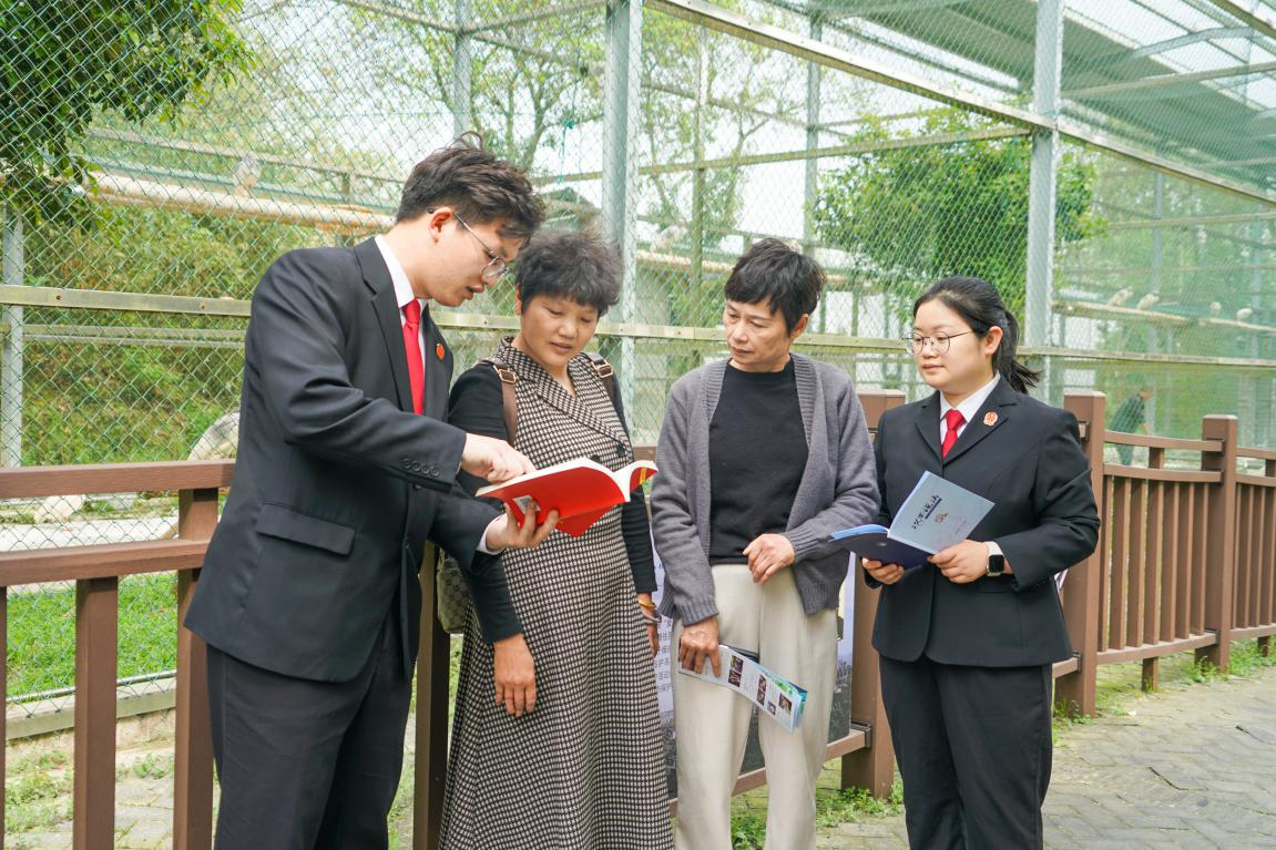 圖為干警圍繞生態(tài)環(huán)境法典向游客普及鳥類保護(hù)相關(guān)知識(shí)。