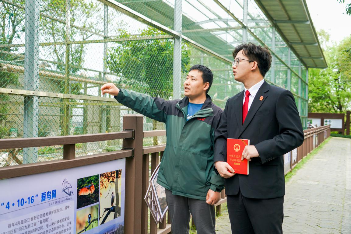 浙江省“愛鳥周”來臨之際,浙江省德清縣人民法院干警走進(jìn)下渚湖濕地公園開展生態(tài)環(huán)境法典普法宣傳活動(dòng)?;顒?dòng)中,干警來到朱鹮保護(hù)基地,向工作人員了解國(guó)家一級(jí)保護(hù)動(dòng)物朱鹮的棲息地與繁育情況。同時(shí),圍繞生態(tài)環(huán)境法典中鳥類保護(hù)的相關(guān)規(guī)定,向游客解讀法律條文,講解鳥類保護(hù)法律知識(shí),旨在提升公眾生態(tài)法治意識(shí),護(hù)航鳥類家園。