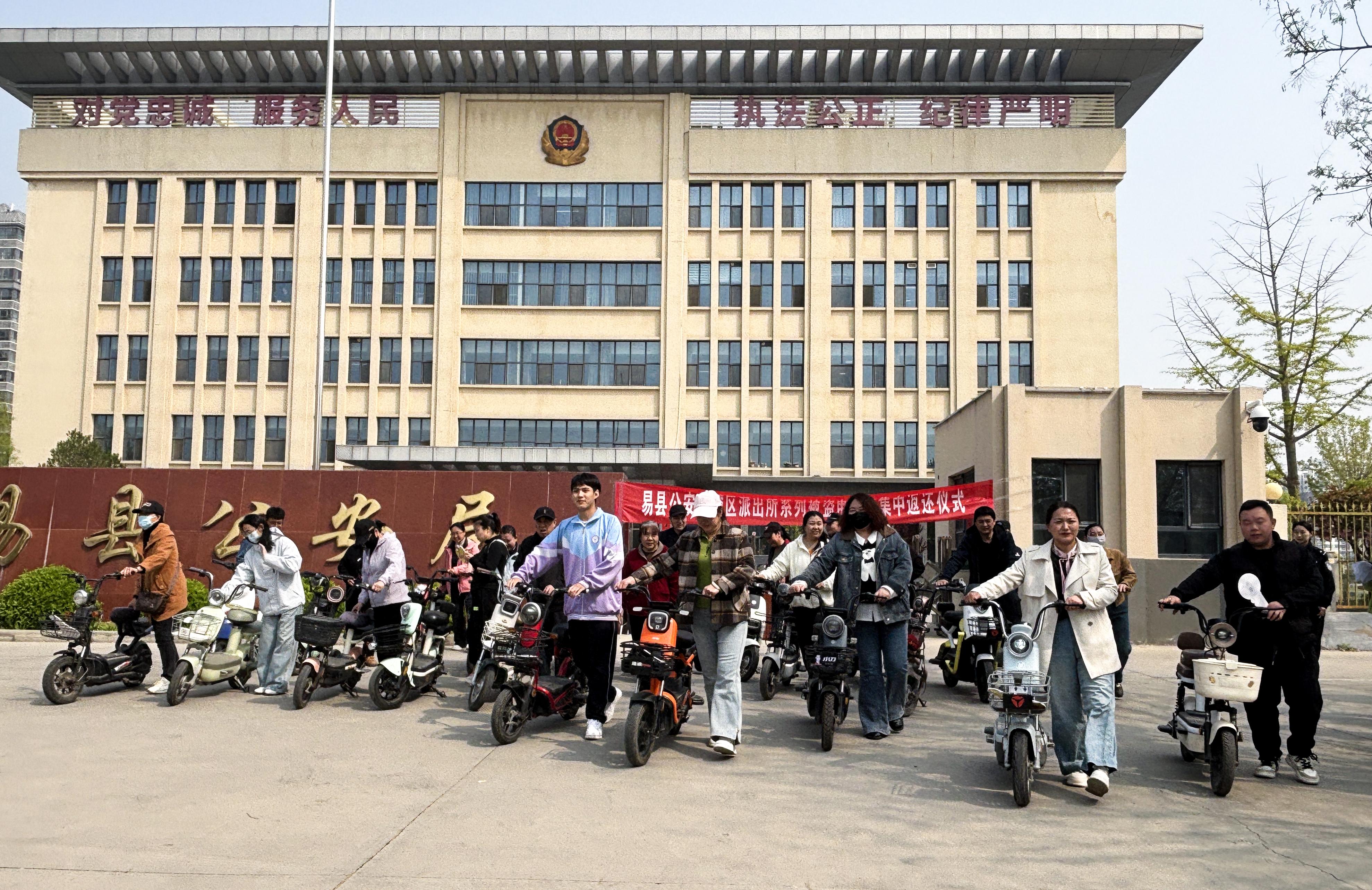 4月15日,河北省保定市易縣公安局舉行涉案電動(dòng)車集中返還活動(dòng),將24輛追回的被盜電動(dòng)車逐一返還失主?;顒?dòng)現(xiàn)場(chǎng),24名車主領(lǐng)回了自己失而復(fù)得的電動(dòng)車,紛紛對(duì)民警高效辦案、為民挽損表示感謝。