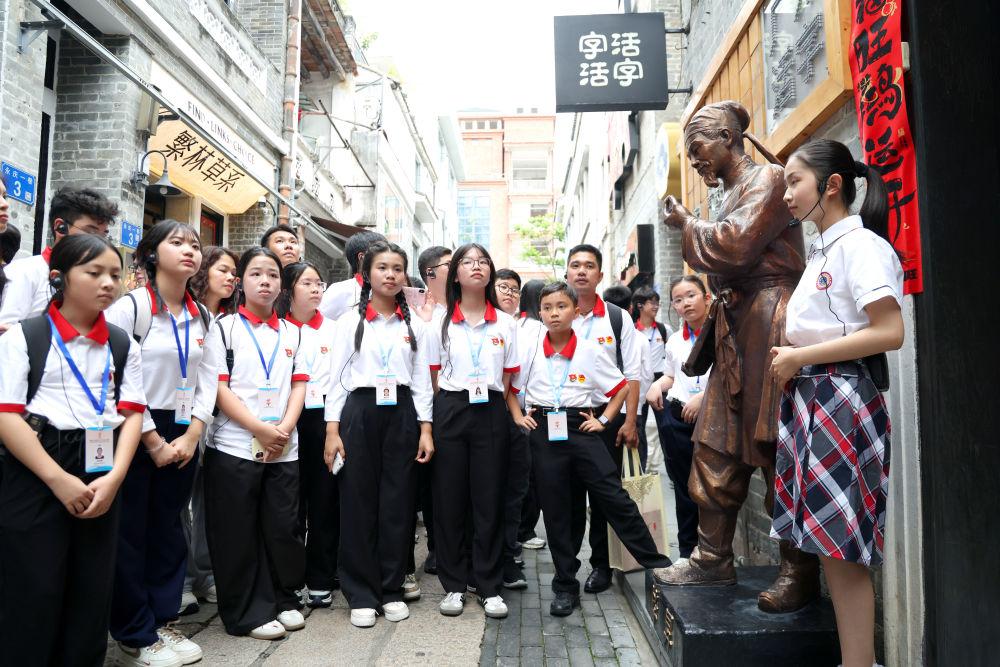 4月11日,越南青少年在廣州永慶坊了解活字印刷相關(guān)知識(shí)。