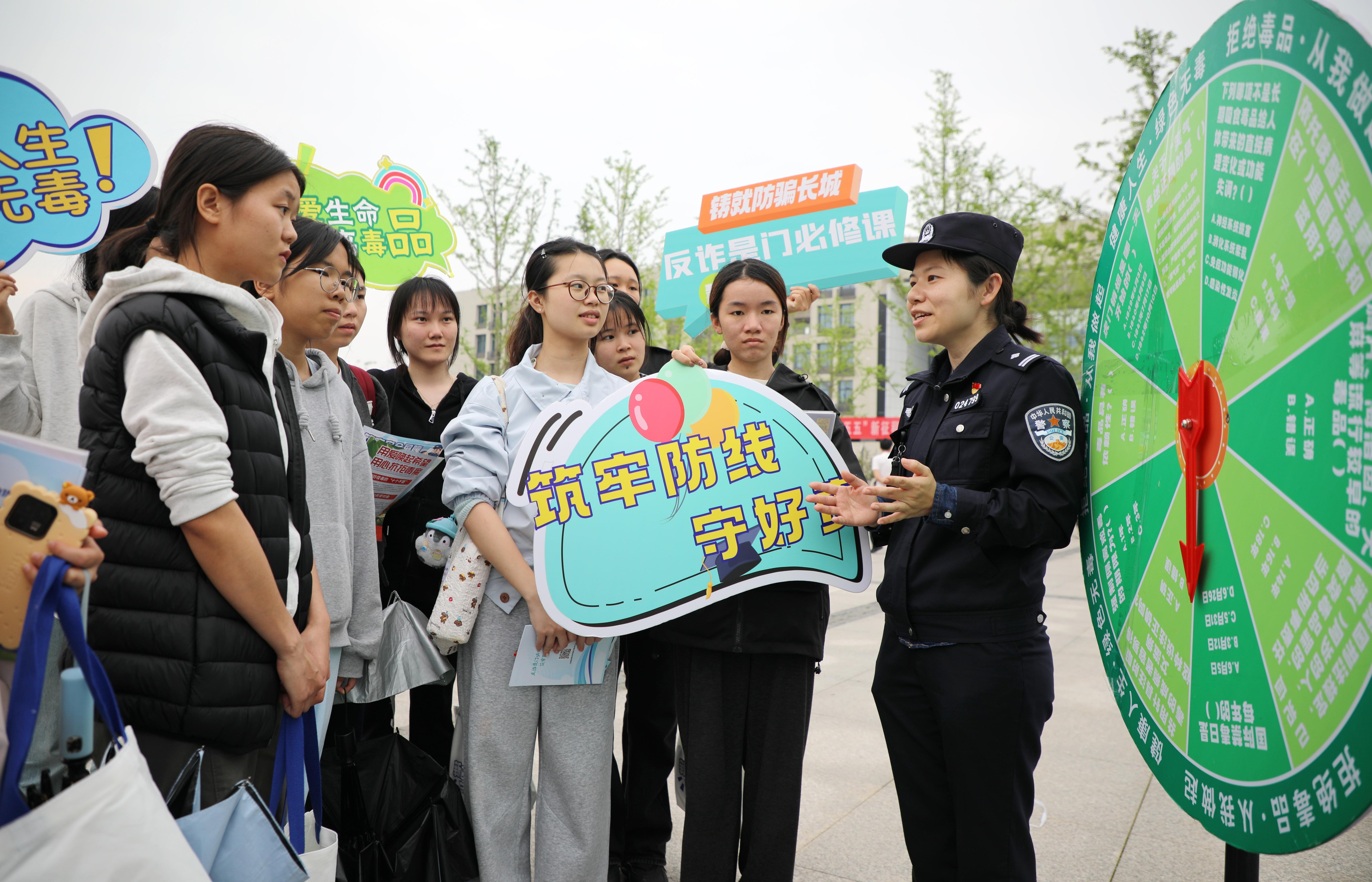 圖為4月15日,民警走進(jìn)江西財經(jīng)職業(yè)學(xué)院為學(xué)生講解禁毒知識。