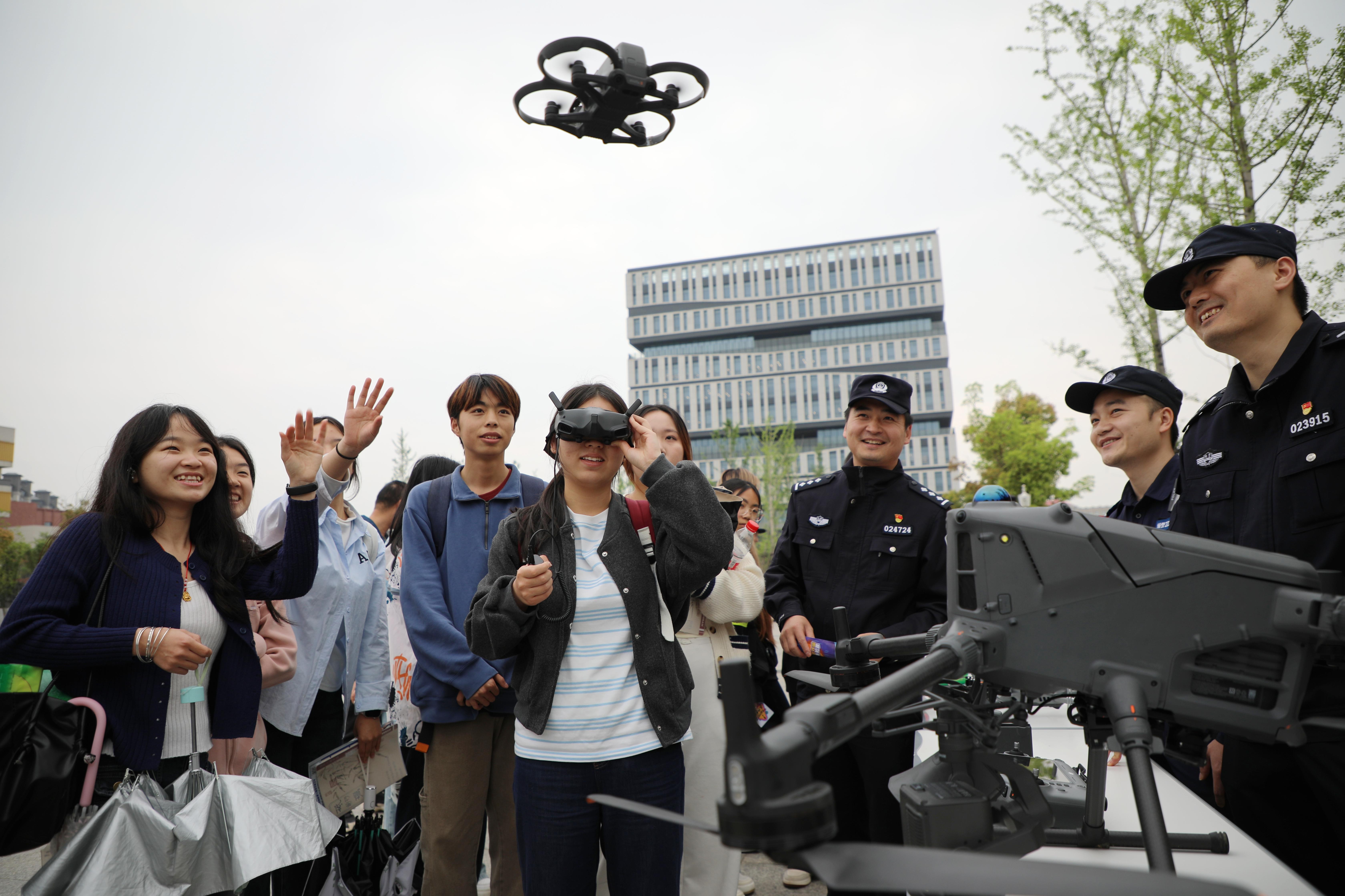圖為4月15日,民警走進(jìn)江西財經(jīng)職業(yè)學(xué)院讓學(xué)生體驗無人機(jī)等警用裝備。