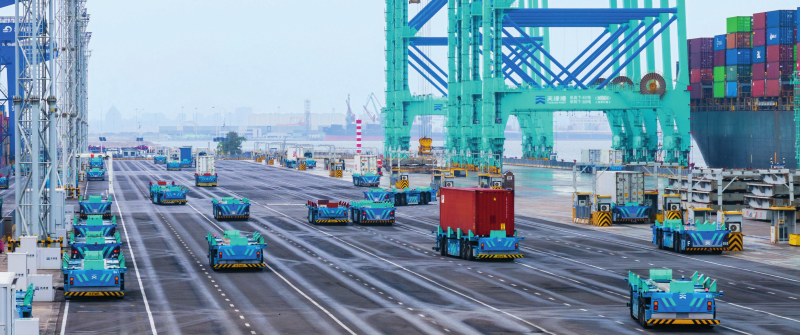 智能水平運輸機器人行駛在天津港第二集裝箱碼頭(2025年6月19日攝)趙子碩攝/本刊
