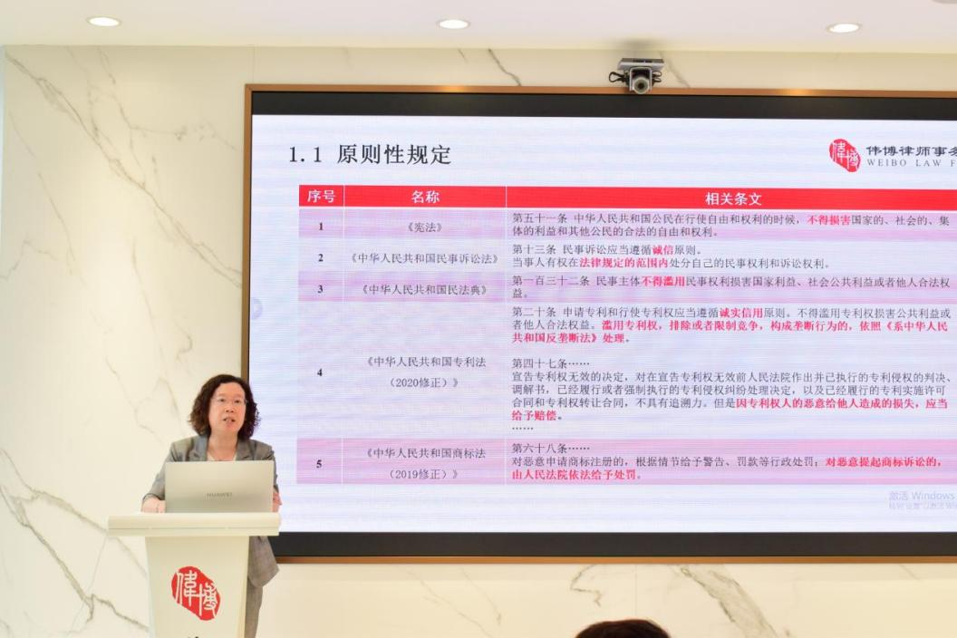 2025年9月5日,由北京市偉博律師事務所(以下簡稱“偉博律所”)主辦的“知識產(chǎn)權惡意訴訟疑難問題與實務研究”講座在北京CBD陽光金融中心偉博律所北京總部舉辦。偉博律所高級合伙人范秀霞律師擔任主講人,從法律規(guī)定、認定標準、司法實踐、國際比較及實務建議五個方面系統(tǒng)梳理了惡意訴訟的現(xiàn)狀與挑戰(zhàn)。
