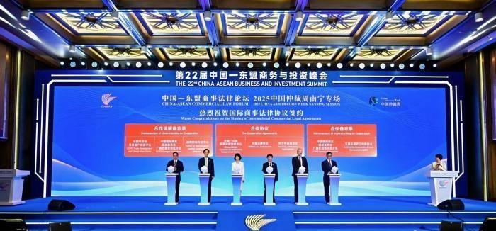 第22屆中國—東盟商務(wù)與投資峰會(huì)9月17日—21日在廣西南寧召開,期間中國—東盟商事法律論壇在南寧舉辦?;顒?dòng)中,中華人民共和國二級大法官、廣西壯族自治區(qū)高級人民法院院長黃海龍,中國國際貿(mào)易促進(jìn)委員會(huì)副會(huì)長李慶霜等嘉賓見證系列合作成果的達(dá)成。