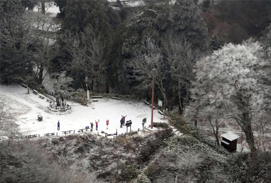 人民網(wǎng)訊 當(dāng)?shù)貢r間12月15日,日本金剛山迎來今冬初雪,比去年早了8天。