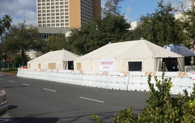 這是12月17日在美國(guó)加利福尼亞州奧蘭治縣歐文拍攝的戶外移動(dòng)醫(yī)院。