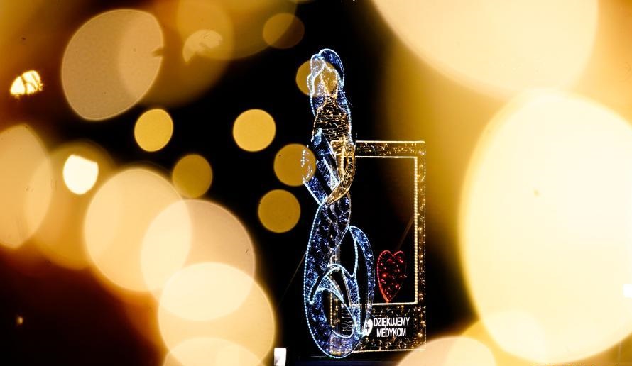 12月16日,波蘭華沙點亮彩燈,向抗擊新冠疫情的醫(yī)務(wù)人員表示感謝。這處彩燈左側(cè)的美人魚為華沙的象征,右側(cè)有“感謝醫(yī)務(wù)人員”的字樣。