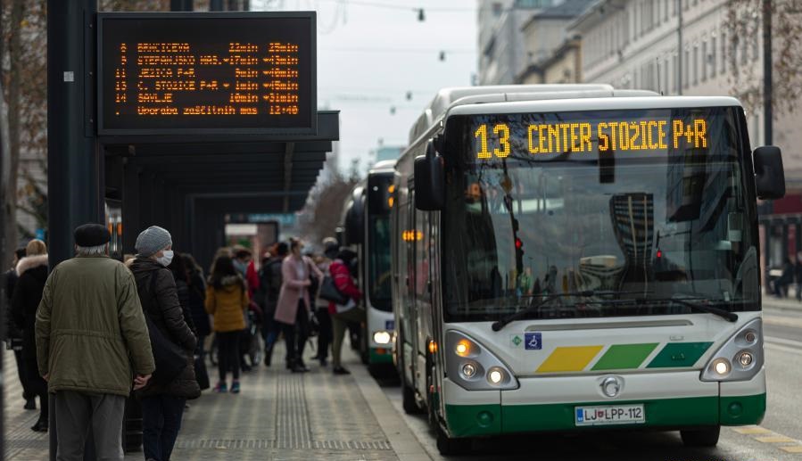 12月17日,人們在斯洛文尼亞首都盧布爾雅那的一個公交車站等車。新華社發(fā)(澤利科·斯特凡尼奇攝)
