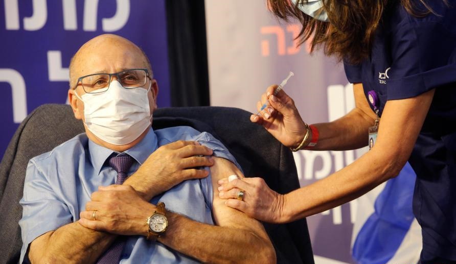 12月19日,在以色列拉馬特甘的謝巴醫(yī)療中心,一名醫(yī)務人員接種新冠疫苗。