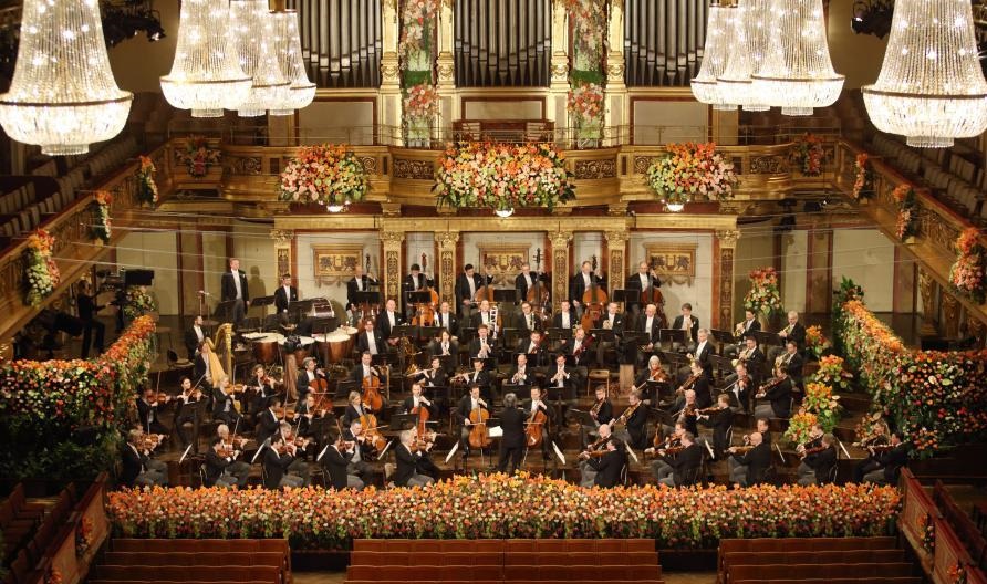 1月1日,維也納愛樂樂團(tuán)在奧地利維也納金色大廳新年音樂會上演奏。新華社發(fā)(迪特.納格攝)