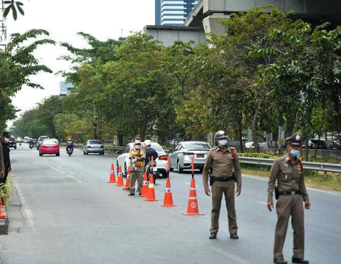 1月5日,警察在泰國曼谷的一處防疫檢查站工作。