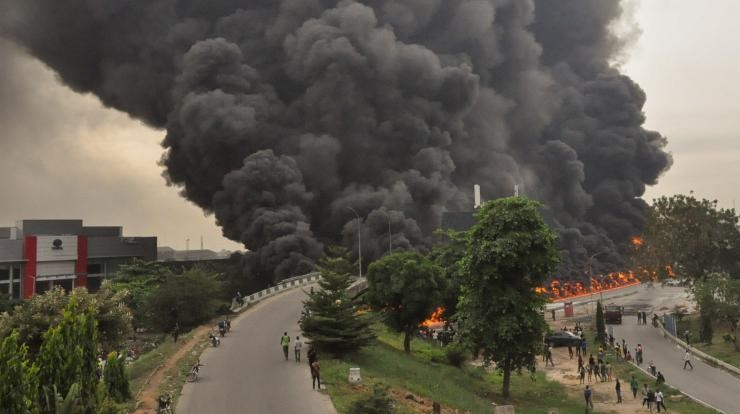 1月7日,在尼日利亞拉各斯,一輛油罐車(chē)爆炸并起火。