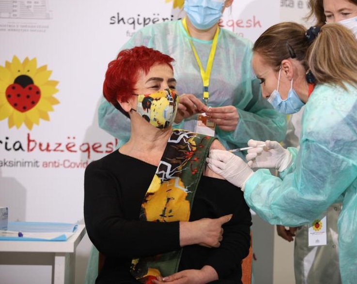 1月11日,在阿爾巴尼亞首都地拉那,醫(yī)生喬莫接種疫苗。她是阿爾巴尼亞第一個接種新冠疫苗的人。新華社發(fā)(根特·奧努齊 攝)