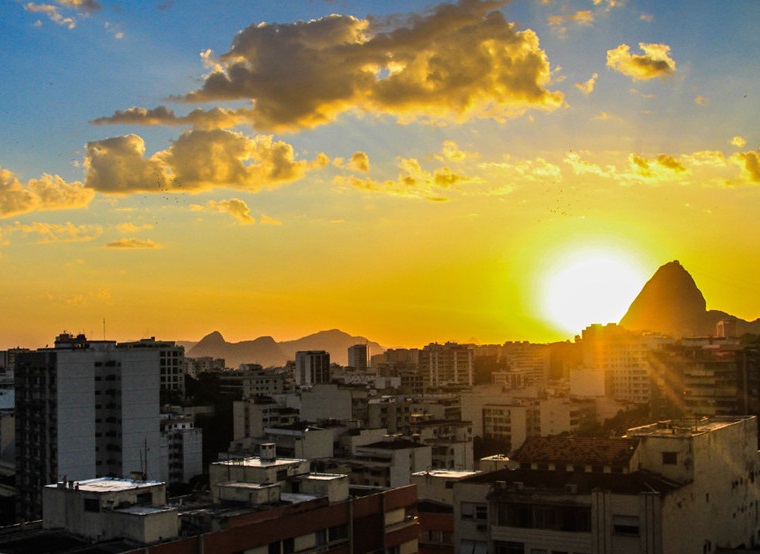 人民網(wǎng)訊 當(dāng)?shù)貢r間1月20日,巴西里約熱內(nèi)盧,盛夏時分,遠眺糖面包山日出。