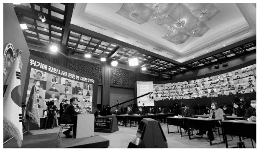 1月11日至21日,韓國總統(tǒng)文在寅通過發(fā)表新年賀詞、舉行在線新年記者會、在國家安全保障會議上發(fā)言等多種方式,就當(dāng)前韓國外交政策闡述了看法,指出了未來努力方向。此后韓國外交部、統(tǒng)一部、國防部等部門在年度匯報(bào)時(shí)進(jìn)一步細(xì)化了具體舉措。從文在寅新年以來的多場發(fā)言來看,打破半島僵局、恢復(fù)韓美同盟關(guān)系、推動中韓高層交往、穩(wěn)定韓日關(guān)系將是新一年韓國外交的重心。
