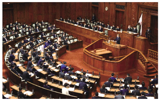 當(dāng)?shù)貢r(shí)間1月18日,日本東京,日本第204屆例行國(guó)會(huì)開幕。日本首相菅義偉發(fā)表施政演說。 CFP供圖