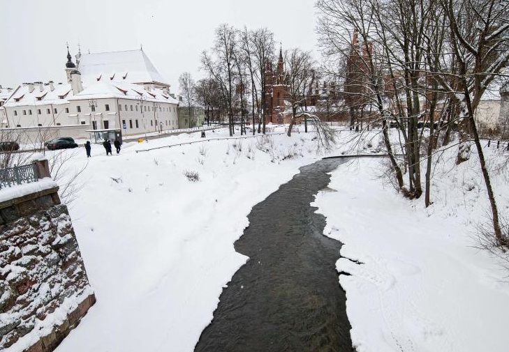 這是2月14日在立陶宛首都維爾紐斯拍攝的雪中的維爾尼亞河。新華社發(fā)(阿爾弗雷達(dá)斯·普里亞迪斯攝)