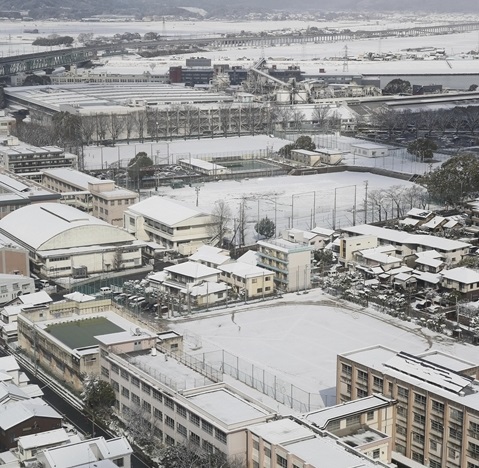 當(dāng)?shù)貢r(shí)間2月18日,日本福岡,當(dāng)?shù)赜瓉?lái)降雪,城市遭積雪覆蓋。(圖片來(lái)源:東方IC)