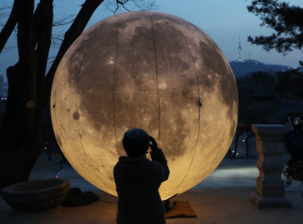 迎接元宵節(jié) 韓國(guó)昌慶宮放置巨型月亮