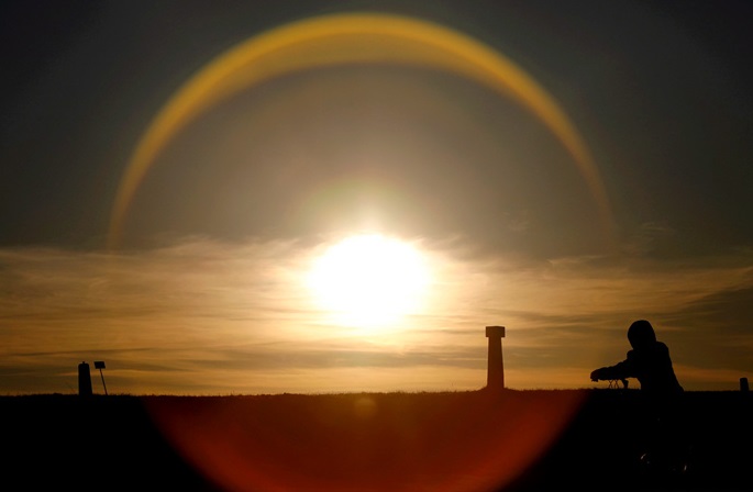 當(dāng)?shù)貢r間3月2日,拉脫維亞薩拉斯皮爾斯,道加瓦河沿岸的日落風(fēng)光,美如畫卷。(圖片來源:東方IC)