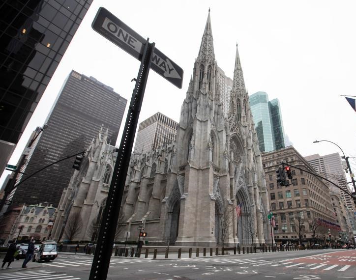 3月17日,在美國紐約,照例應(yīng)舉行圣帕特里克節(jié)巡游活動的第五大道空空蕩蕩。