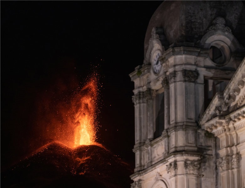 意大利埃特納火山再次噴發(fā) 巖漿四濺