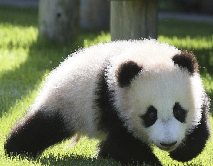 當(dāng)?shù)貢r(shí)間4月7日,日本和歌山縣白濱町娛樂設(shè)施“冒險(xiǎn)世界”,大熊貓寶寶“楓浜”正在曬日光浴。(圖片來(lái)源:東方IC)