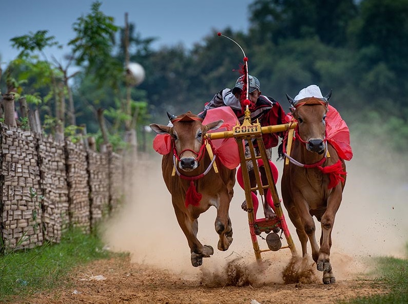 人民網(wǎng)訊 當?shù)貢r間2021年4月10日,印尼馬都拉舉行傳統(tǒng)賽牛大會。