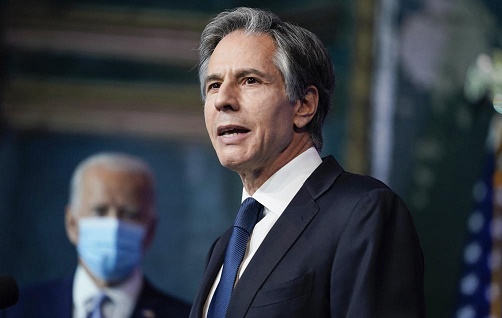 美國(guó)總統(tǒng)拜登(左)與美國(guó)國(guó)務(wù)卿布林肯