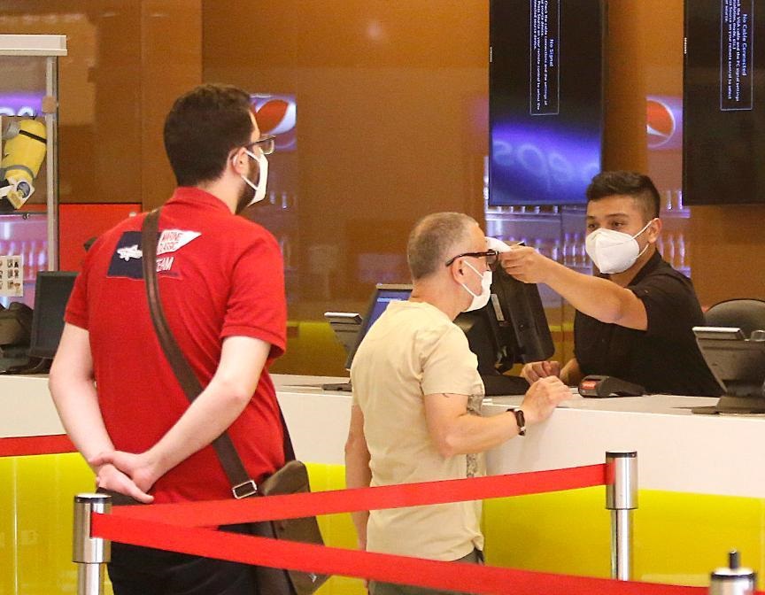 6月2日,一名男子在黎巴嫩貝魯特的一家電影院接受體溫檢測。