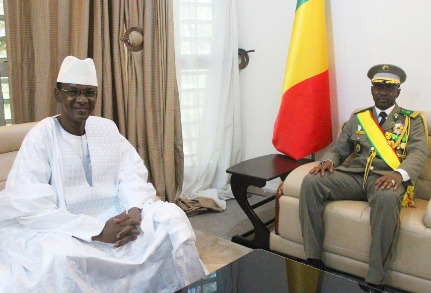 6月7日,馬里過(guò)渡總統(tǒng)阿西米·戈伊塔(右)在首都巴馬科會(huì)見喬蓋·科卡拉·馬伊加。