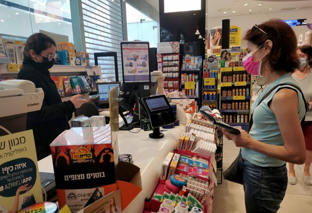 6月25日,一名女子戴著口罩在以色列中部城市莫迪因一座購物中心內購物。