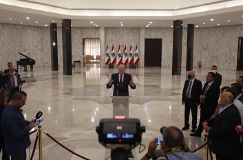 7月26日,在黎巴嫩總統(tǒng)府巴卜達(dá)宮,納吉布·米卡提(中)被任命為黎巴嫩新總理后發(fā)表講話。