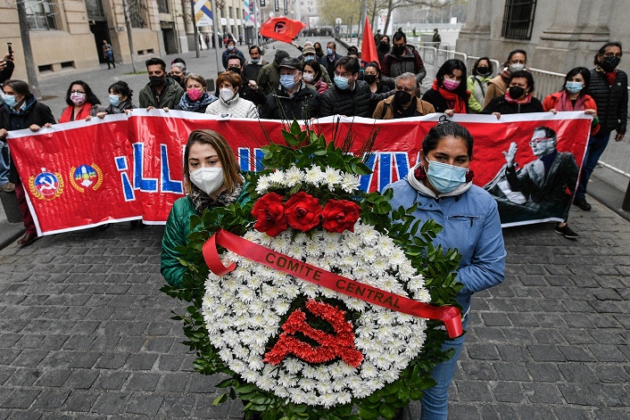 9月11日,智利共產(chǎn)黨在首都圣地亞哥舉行活動(dòng)悼念48年前在軍事政變中遇難的前總統(tǒng)阿連德。