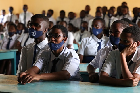 2月4日,在盧旺達(dá)首都基加利的一所學(xué)校里,學(xué)生們收看北京冬奧會開幕式直播。