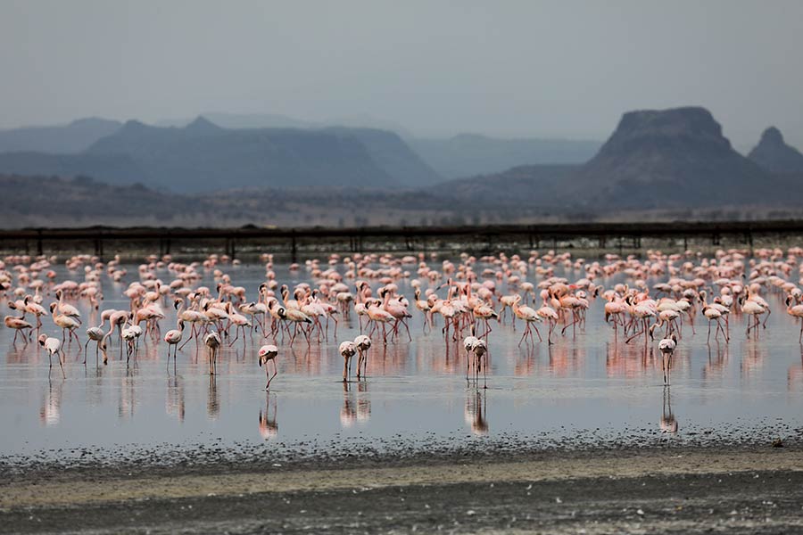 人民網(wǎng)訊 當?shù)貢r間3月25日,肯尼亞卡賈多,火烈鳥群聚在東非大裂谷的馬加迪湖中悠閑涉水。