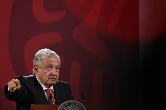 6月6日,在墨西哥首都墨西哥城國家宮,墨西哥總統(tǒng)洛佩斯出席新聞發(fā)布會。