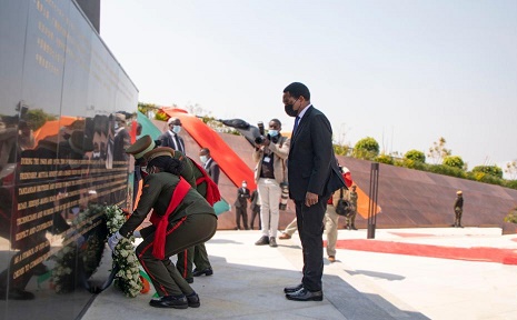 希奇萊馬當(dāng)天參觀了坦贊鐵路紀(jì)念園,并向?yàn)樾藿ㄌ官濊F路等項(xiàng)目而犧牲的中方人員敬獻(xiàn)花圈。他在致辭中感謝數(shù)萬名中方人員不遠(yuǎn)萬里赴非修建坦贊鐵路,表示振興坦贊鐵路是對(duì)英雄最好的紀(jì)念。