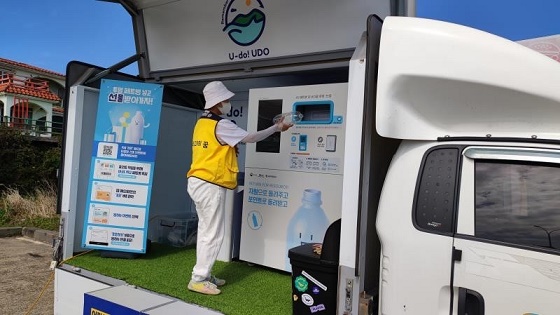 一般游客在進(jìn)入牛島前,可以在碼頭等處掃碼,簽署支持牛島資源循環(huán)運(yùn)動(dòng)的聲明。游客用完島上餐飲商鋪提供的可重復(fù)使用塑料杯后,可將其放入回收設(shè)備,回收后的杯子經(jīng)過清洗、消毒等流程后將被重復(fù)利用。為鼓勵(lì)游客積極參與,回收終端提供積分、現(xiàn)金返還和交通卡充值等形式的獎(jiǎng)勵(lì)。此外,對(duì)于沒有用完的塑料杯,游客可以帶出牛島,在濟(jì)州島主要交通設(shè)施、指定咖啡店等處利用回收設(shè)備進(jìn)行回收。