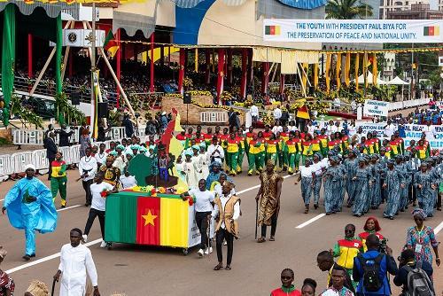 圖為20日,在喀麥隆首都雅溫得舉行的國(guó)慶慶祝活動(dòng)上,民眾列隊(duì)行進(jìn)。新華社發(fā)(科普索攝)