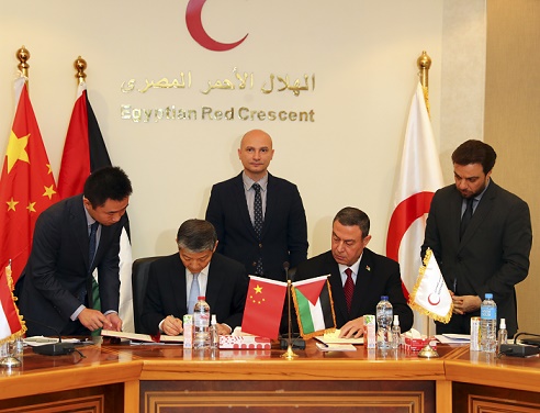 《中華人民共和國(guó)政府與巴勒斯坦國(guó)政府向巴勒斯坦加沙地帶提供緊急人道主義物資援助交接證書(shū)》簽字儀式12月3日在埃及首都開(kāi)羅舉行。中國(guó)駐埃及大使廖力強(qiáng)、巴勒斯坦駐埃及大使迪亞布、埃及紅新月會(huì)總干事拉米等出席。