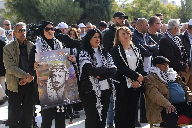 11月11日,在約旦河西岸城市拉姆安拉,民眾集會紀(jì)念巴勒斯坦前領(lǐng)導(dǎo)人阿拉法特逝世20周年。新華社發(fā)(尼達(dá)爾·艾仕塔耶?dāng)z)
