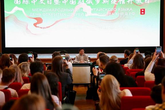 中國駐俄羅斯大使張漢暉面向百余名師生講授公開課,闡釋中文承載的文化內(nèi)涵。