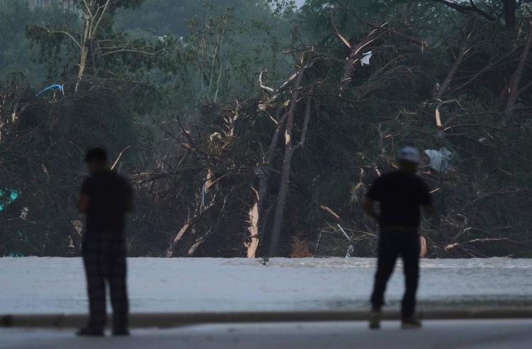 7月4日,在美國(guó)得克薩斯州英格勒姆市,人們?cè)诠线_(dá)盧普河沿岸查看。新華社/美聯(lián)
