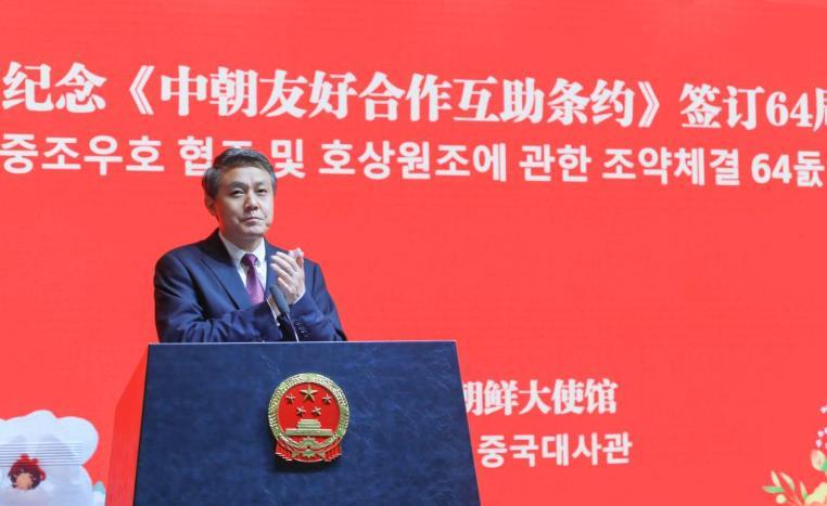 7月9日,在朝鮮首都平壤,中國(guó)駐朝鮮大使王亞軍在紀(jì)念《中朝友好合作互助條約》簽訂64周年招待會(huì)上致辭。